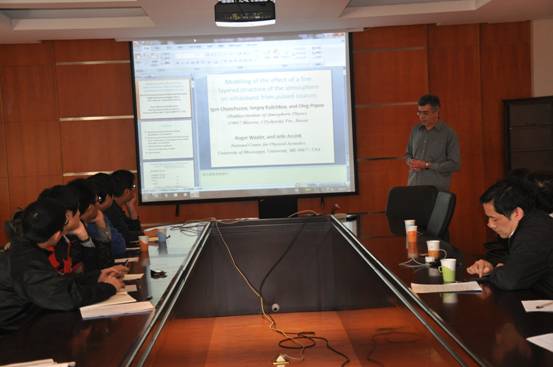 应噪声与振动实验室的邀请,作为中科院外籍研究员计划获得者,俄罗斯大气物理研究所的国际科学家Igor Chunchuzov 教授于2012年4月6日至6月1日期间与中科院yx06永兴彩票集团的研究人员一起开展次声传播领域的合作研究。作为交流合作内容的一部分,4月26日下午,教授在崇福楼502会议室做了题为“modeling of the effect of a fine layered structure of the atmosphere on infrasound from pulsed sources”的学术报告,所内师生听取了本次报告。噪声与振动实验室主任杨军研究员,科技处黎瑛老师出席了此次报告。杨军主任代表实验室向Igor Chunchuzov教授的来访表示热烈的欢迎,杨亦春研究员主持了此次报告会。