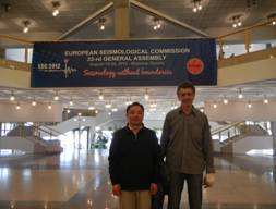 ESC2012会议是欧洲地震研究协会举办的学术会议,会议上聚集了欧洲国家众多的地震研究工作者,会议主题包括地震物理机制及相关领域,地震预测,人工智能在地震数据处理研究中的应用,地震预防等众多与地震相关的研究领域,其中本次会议专门列出地震与次声关系的分会,旨在促进多个物理领域实现对地震灾害难题的研究。8月24日,杨亦春研究员与法国CEA研究员Guilbert在此分会场就地震与次声关系进行了深入的探讨。