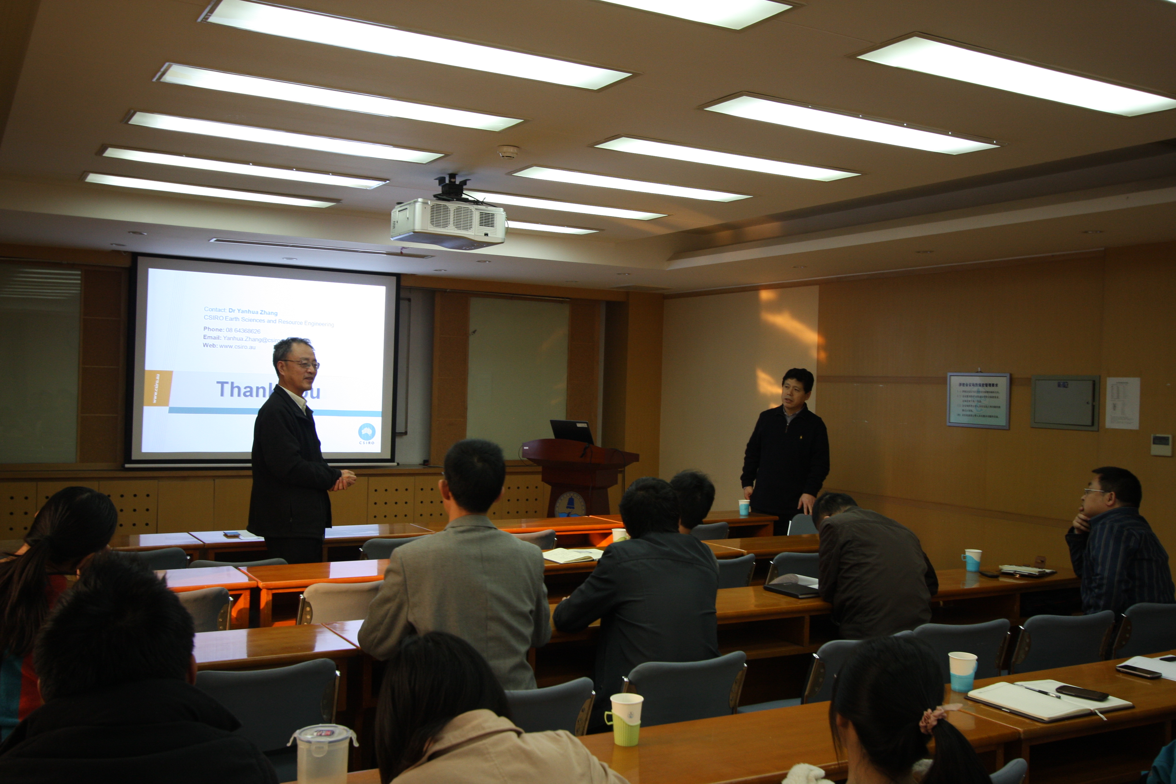 2013年10月30日下午,应超声物理与探测实验室王秀明主任邀请,澳大利亚联邦科学与工业研究组织(CSIRO)地球科学和资源工程研究所首席科学家张晏华研究员访问yx06永兴彩票集团并进行学术交流。张晏华研究员作了题为“Numerical modeling of mineralization processes and application to mineral exploration”的学术报告,报告会由张海澜研究员主持,超声物理与探测实验室职工和学生共计30余人参加了此次报告会。