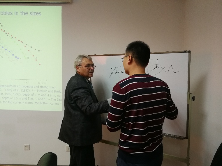 11月21日, Vladimir A. Bulanov教授与中科院先进水下信息技术重点实验室的研究人员和研究生们在冰下声场散射、参量阵、水下通信导航等方面进行了深入交流和探讨,为实验室相关课题研究提供了技术帮助。