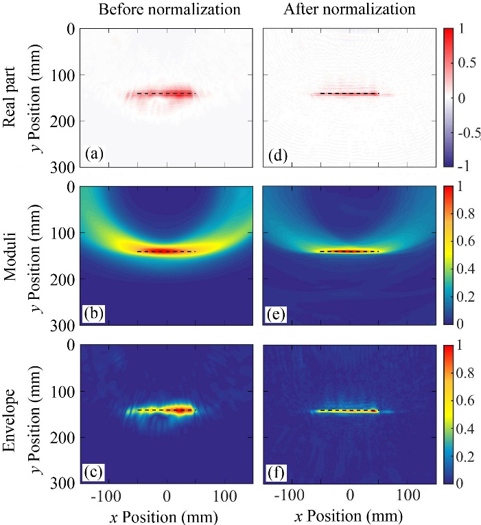 目前实验仅针对平直裂纹,推断对于其他形状的缺陷(如倾斜裂缝、弯曲裂缝等)也可以得到相应的图像,这有待开展更深入的工作。