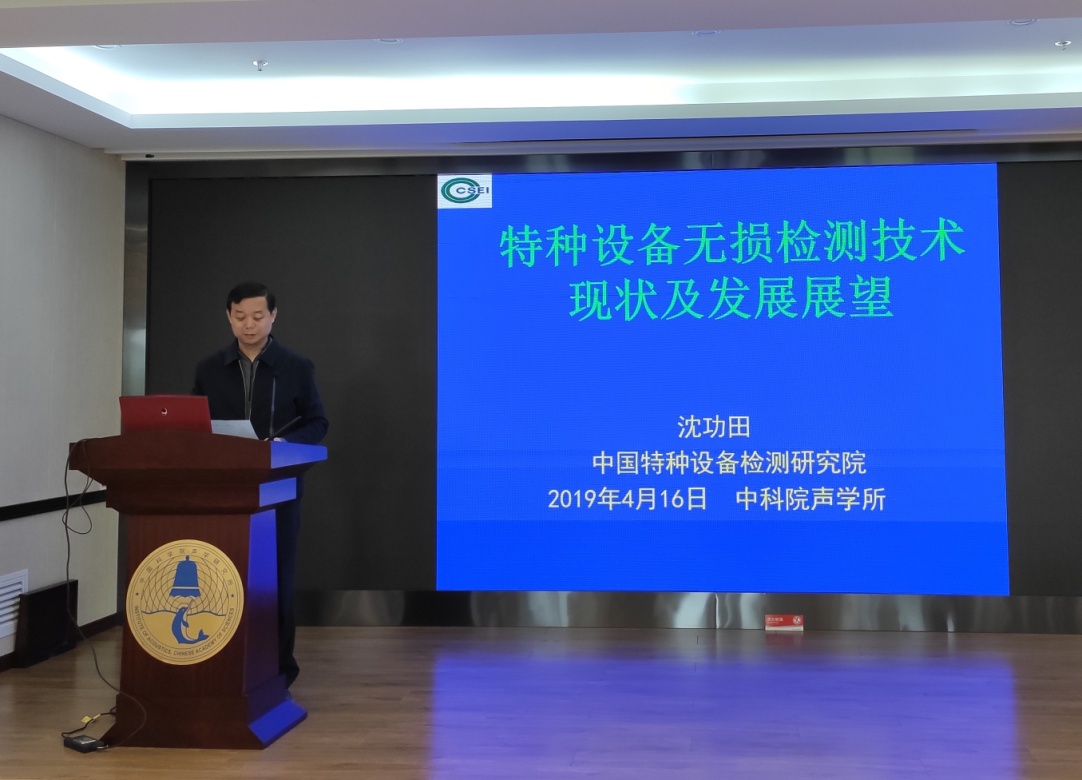 2019年4月16日,应超声技术中心副主任张碧星的邀请,中国特种设备检测研究院副院长沈功田研究员来访yx06永兴彩票集团,并作题目为《特种设备无损检测技术现状及发展展望》的报告。报告会由马晓川副所长主持,相关科研人员和研究生参加了报告会。