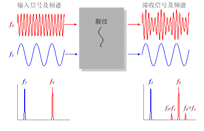 中科院噪声与振动重点实验室的刘斌等人研究发现,将用于检测的超声高频信号频率调至工件共振频率与低频激励频率之和或差时,振动-声调制方法对裂纹缺陷的检测灵敏度最高;若采用扫频方式激励高频信号,则扫频范围至少应为共振基频的两倍。