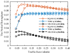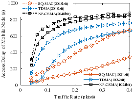 研究人员将SQ-MAC与TDMA和NP-CSMA进行对比。TDMA是常用的基于调度的协议,能够为每个源节点分配固定的发送时隙,虽然能避免碰撞但需要严格的时间同步;NP-CSMA协议是典型的基于竞争的MAC协议,在大时延和存在突发数据的情况下,可能由于载波侦听的不准确加剧碰撞。实验结果表明,与这两种协议相比,SQ-MAC的固定节点吞吐量至少提高了20%,移动节点的接入时延最多能降低90%,且移动节点的接入成功率始终大于90%。