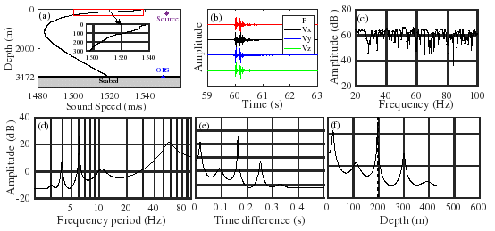 近期,中科院yx06永兴彩票集团声场声信息国家重点实验室的戚聿波、周士弘、梁玉权等人提出了一种在深海大深度近水平距离接收环境中基于单矢量水听器的被动宽带声源深度估计方法,该方法不需要垂直线列阵、精确的海洋环境参数信息及对运动目标的长时间跟踪,在单快拍情况下仅利用直达波和海面反射波的宽带干涉特征即可实现声源深度估计。