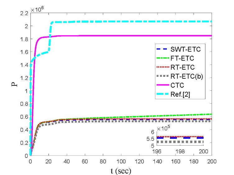 仿真对比验证表明,相比于传统的控制方法,研究人员提出的SWT-ETC具有更高的控制精度(图2)、更低的能量消耗(图3)以及更少的通信次数(图4)。
