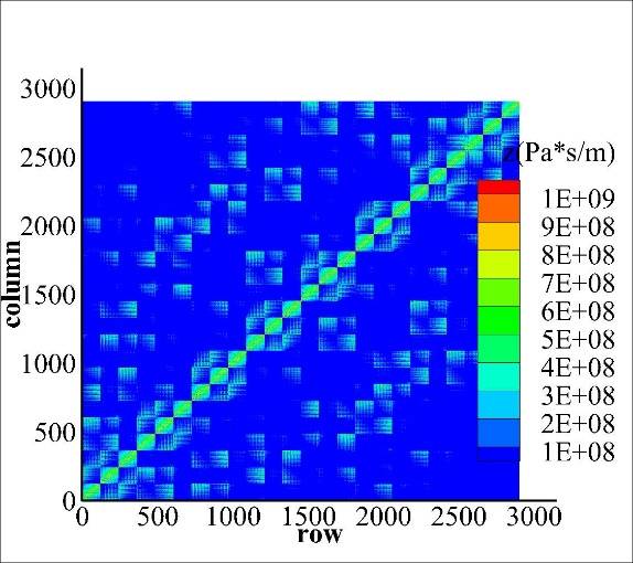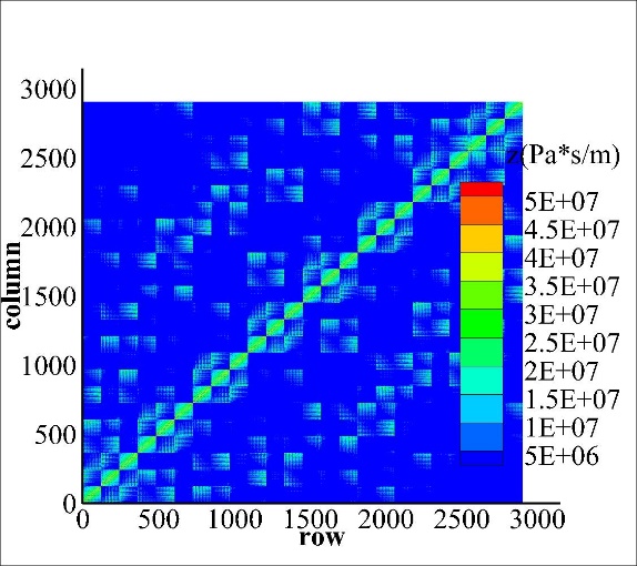 图1 弹性球壳的全局声阻抗幅值矩阵:(a):100Hz;(b):2000Hz(图/中科院yx06永兴彩票集团)