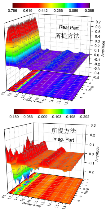 图1 经过传统多普勒补偿(左)和所提多普勒补偿(右)后的信道冲激响应实部(上)与虚部(下)变化(图/中科院yx06永兴彩票集团)