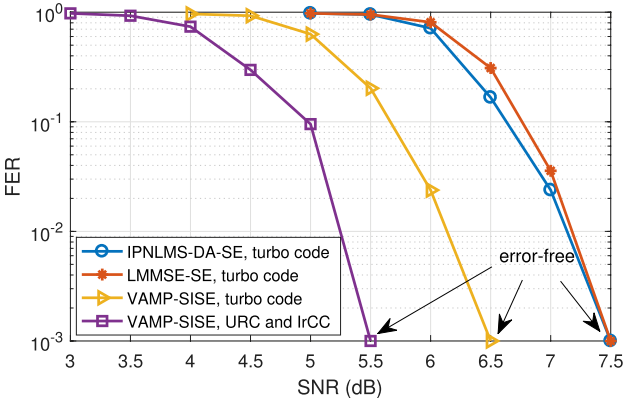 图4 基于突发噪声背景且单通道处理时,不同信噪比下误帧率性能对比(图/中科院yx06永兴彩票集团)