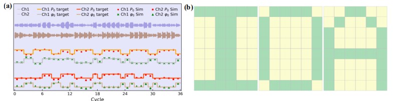 图4. (a)与字母“IOA”对应的信号及其所携带的信息,(b)根据两个通道携带的数据所重构的图像(图/中科院yx06永兴彩票集团)