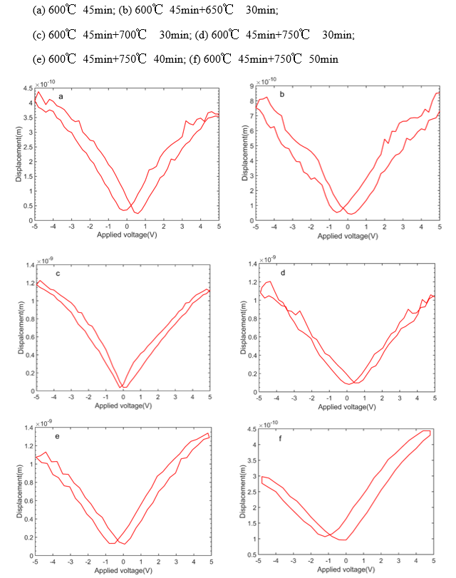 图2 不同退火工艺得到的典型压电测试曲线(图/中科院yx06永兴彩票集团)
