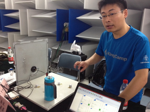 工作人員介紹“蛟龍號”載人潛水器聲學系統