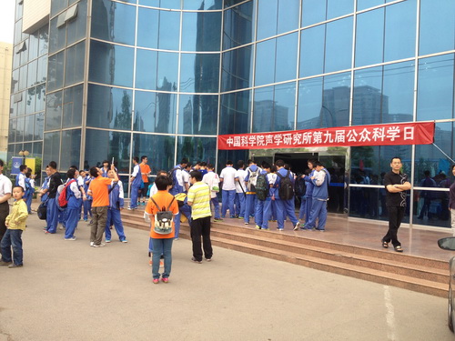 聲學所第九屆公眾科學日活動5月18日舉行,等待入場參觀的中學生
