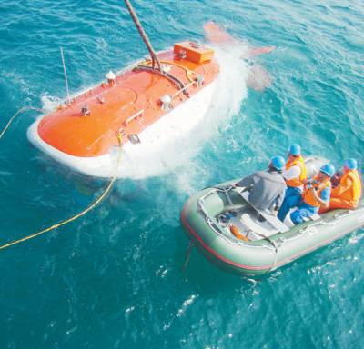图①:2009年,蛟龙号第一次海上试验。(人民视觉)