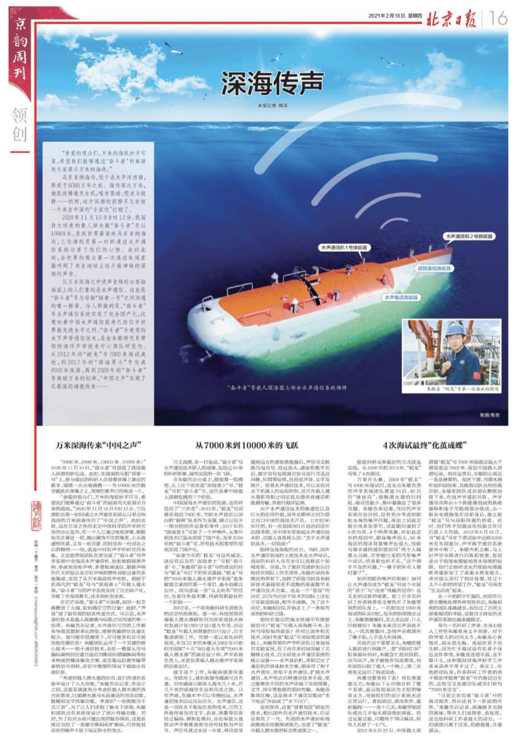 2020年11月10日8时12分,我国自主研发的载人潜水器“奋斗者”号以10909米,坐底世界最深处马里亚纳海沟,三位潜航员第一时间通过水声通信系统分享了他们的心情。此时此刻,全世界的观众第一次通过电视直播听到了来自地球上这片最神秘的深海的声音。