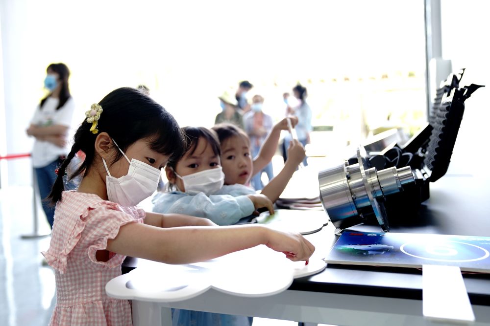 ↑5月22日,小朋友在声学创新成果展示现场写下自己的祝愿。