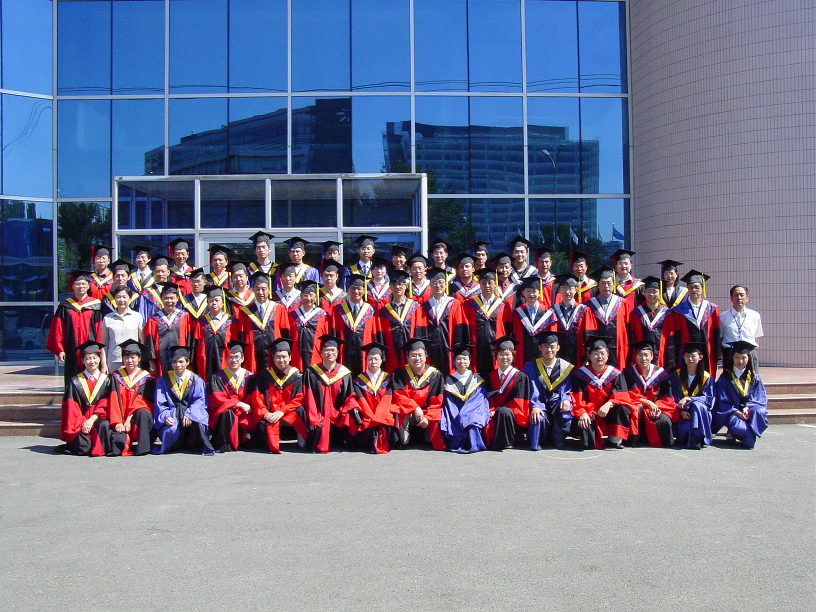 毕业典礼最后一项仪程在欢快有序的气氛中进行。田所长等主席台就座的领导为毕业生们颁发毕业证书。随后导师和毕业生们着导师服和学位服合影留念,有的学子高兴的和家人合影共享这一美好时刻。DSP楼前,yx06永兴彩票集团2004年毕业生齐聚在照相机前,频频留下永恒瞬间;学子们在灿烂的阳光下,兴奋的互相致意,向天空中高高的抛起了学位帽……