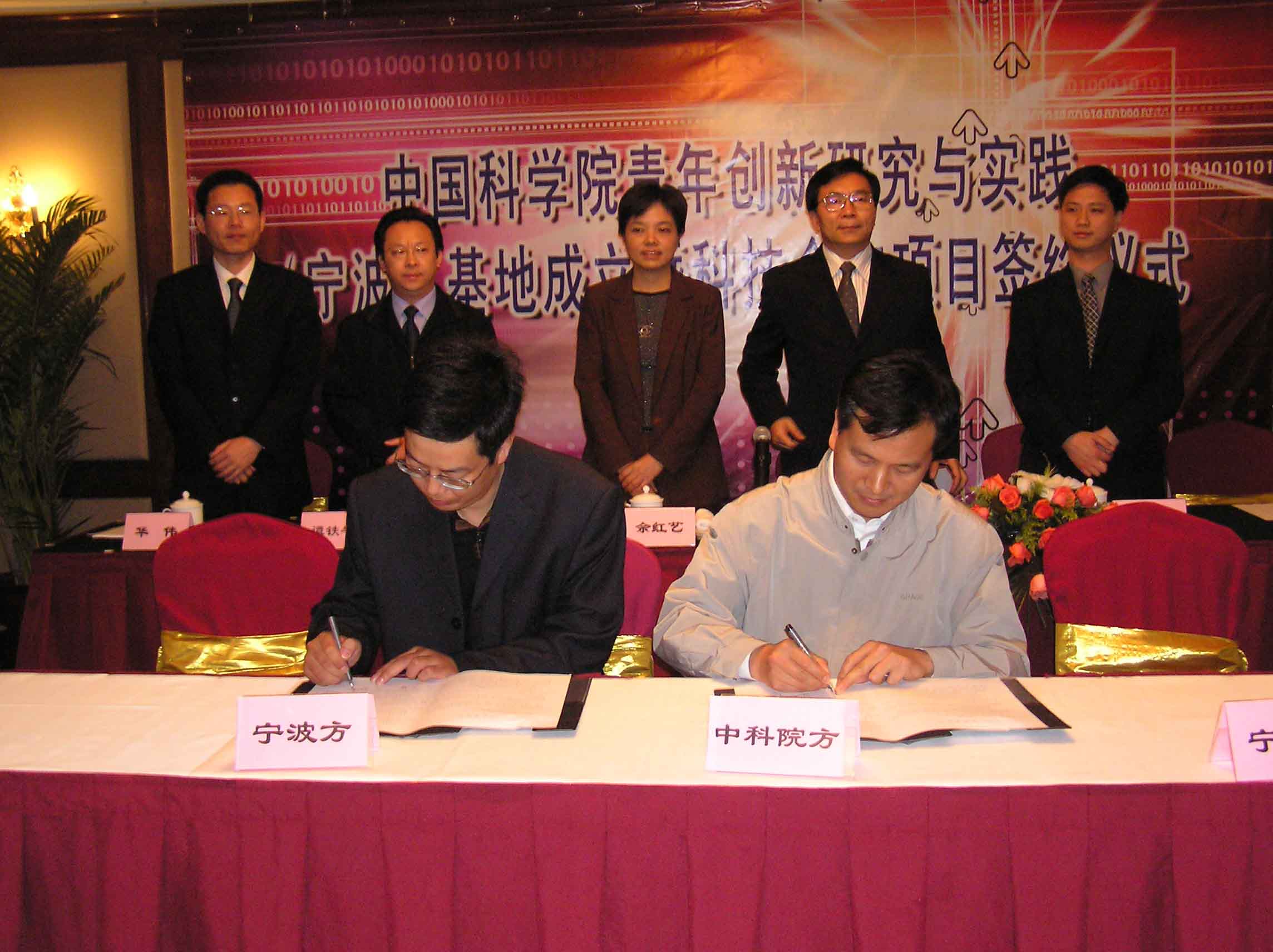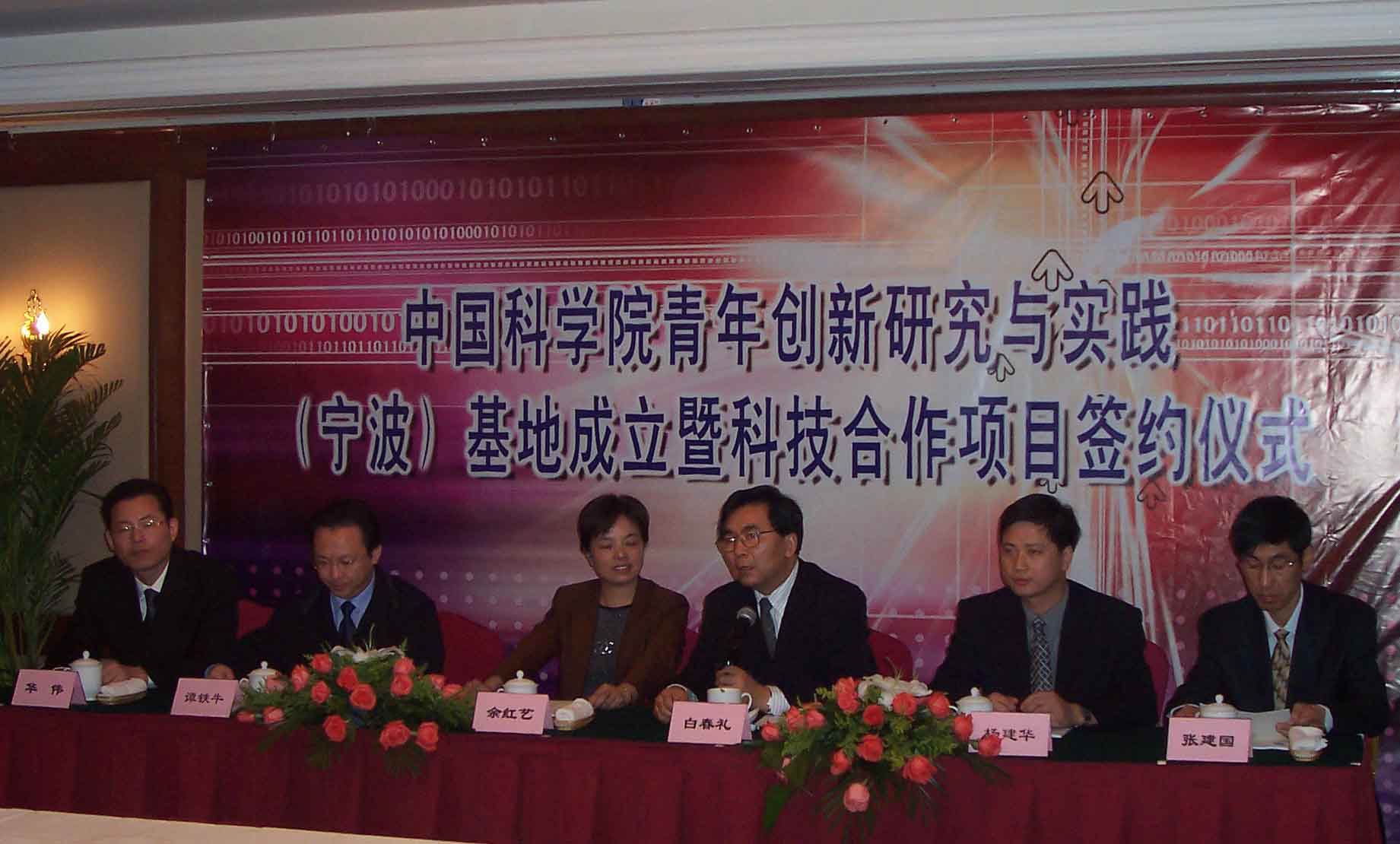 10月20日晚17:30分中科院青年创新研究与实践(宁波)基地成立暨科技合作项目签约仪式在宁波开元大酒店华光厅隆重召开。中科院副院长白春礼、宁波市副市长余红艺、yx06永兴彩票集团所长田静、自动化所所长谭铁牛、计算所副所长樊建平、宁波市科技局副局长张建国等领导同志出席会议。中科院副院长白春礼、宁波市副市长余红艺先后发表讲话。
