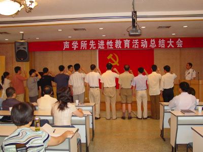 会上,景副书记还传达了院党组关于表彰优秀共产党员和优秀党务工作者的决定。在6月28日召开的院先进性教育活动总结表彰大会上,通报表彰了20名优秀共产党员和7名优秀党务工作者。yx06永兴彩票集团水声二支部的魏建江同志被评为优秀共产党员。语言支部书记熊亮同志被评为优秀党务工作者。景荣才同志要求全所广大共产党员向他们学习,争做建功立业的模范。