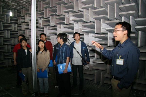 参观者绕有兴致的参观消声实验室