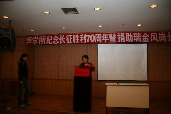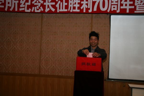 这次“纪念红军长征胜利70周年暨向江西瑞金凤岗长征小学捐赠动员会”是所党委今年组织的纪念长征胜利70周年的系列活动之一。会上,田静所长兼书记代表所党委作了题为“发扬长征精神,建设和谐社会”的主题报告。田静在报告中首先回顾了70年前红军长征的伟大历程,指出了长征胜利的重大意义,从五个方面总结了伟大的长征精神,并指出长征精神的现实意义和对我们科研工作者的启示。