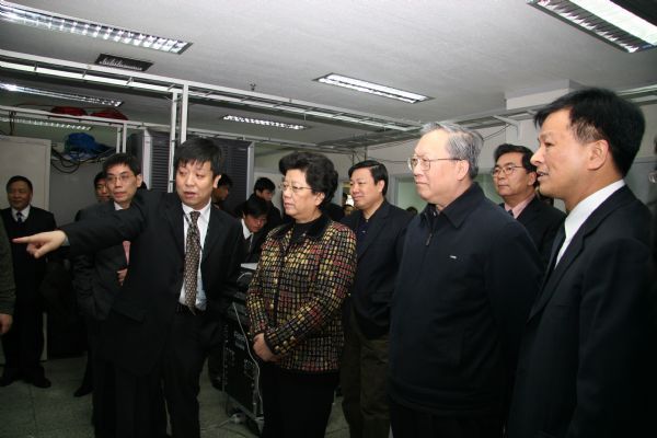 1月23日上午,国务委员陈至立在全国人大常委会副委员长、中国科学院院长路甬祥的陪同下,视察了声学研究所。