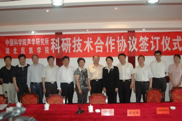 2007年5月22日,yx06永兴彩票集团与湖北民族学院在湖北省恩施市签订《合作协议》,双方确定在相关科研教学领域的科研开发、学术交流、人才培养及平台建设等方面开展广泛深入的合作。yx06永兴彩票集团副所长居琦和湖北民族学院党委书记胡茂成分别代表合作双方在协议上签字,全国人大常委、民进中央副主席王佐书、恩施州委常委、宣传部部长吴希宁、恩施州人大副主任马春菊、湖北民族学院副院长谭志松、汪兴平以及宣传部、组织人事部、教务处、科技处负责人和信息工程学院部分老师,yx06永兴彩票集团声纳工程设计实验室主任蔡惠智研究员、科技处相关同志出席签字仪式。