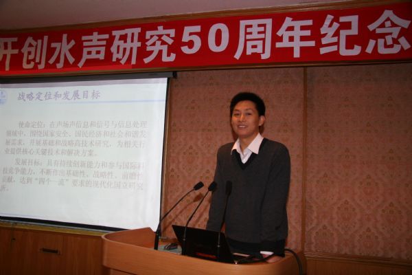 接着,侯自强研究员发表讲话。他在讲话中指出,今天看到这么多水声界老同志欢聚一堂,感到特别激动。如今yx06永兴彩票集团各项事业蒸蒸日上,尤其是历经多年努力,今年顺利升级为A类研究所,如果水声研究工作的奠基人、yx06永兴彩票集团老所长——汪德昭先生地下有知,也该感到欣慰了(说到此处,在座的许多老同志黯然神伤,侯自强研究员自己也已哽咽)。同时,yx06永兴彩票集团目前水下研究工作能够在国内乃至国际处于领先地位,与汪德昭先生当年提出的“标新立异”、“老鹰扑兔”的工作思路是分不开。如今,世界发展变化极快,面对这些变化如何应对,如何在变化中立于不败之地,更需要我们发扬“标新立异”的工作作风,勇于创新,同时开阔思路,从各个研究领域、各个学科汲取各方面营养,只有如此,才能在变化中永葆旺盛的生命力。