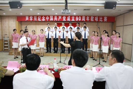 2011年6月27日下午,yx06永兴彩票集团党委在DSP大楼多功能厅隆重举行了“纪念中国共产党成立90周年”歌咏比赛,共有19个支部组成的参赛队、近500余名职工、研究生参加并观看了比赛。广大党员群众用嘹亮歌声唱响红色经典,赞颂党的恩情,抒发新时代壮志豪情。王小民所长,张春华书记,居琦副所长,倪宏副书记、副所长,李风华副所长等所领导以及所党委委员孙长瑜、李双田、王秀明、李淑秋、郭良浩同志都来到现场,担任评委并参加了演出。张仁和院士、汪承灏院士也加入了各自参赛队的演出。整个多功能厅充满了喜庆、祥和的气氛。