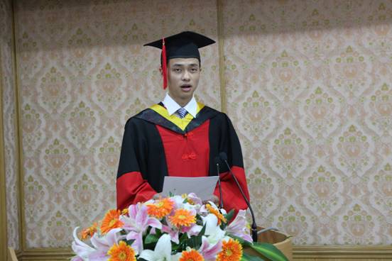 蔡宇同学代表全体毕业生感谢yx06永兴彩票集团的悉心培养,感谢领导和导师们的辛勤培育,他表示全体毕业生将不负师长们的教诲和嘱托,做德才兼备勇挑重担的人,成为祖国建设的栋梁。