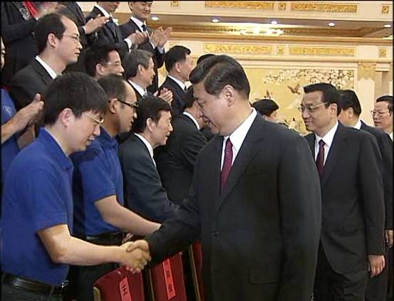 我所朱维庆、朱敏、杨波、张东升等“蛟龙号”团队获奖人员光荣地获得了中央领导的亲切会见。白春礼院长特发贺信向我所获奖人员和团队表示祝贺。