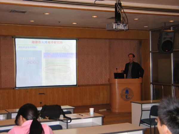 2007年11月26下午,湘潭大学的龙士国老师和大庆石油测井公司的黄宝华高工在DSP多功能厅分别作了题为“稀土超磁致伸缩换能器在声波工程无损检测中的应用”和“低孔低渗储层测井解释问题以及声波测井技术”的报告。