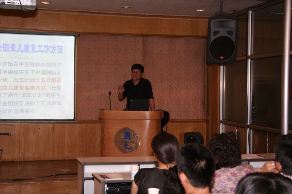 中国聋儿康复研究中心孙喜斌主任在作报告