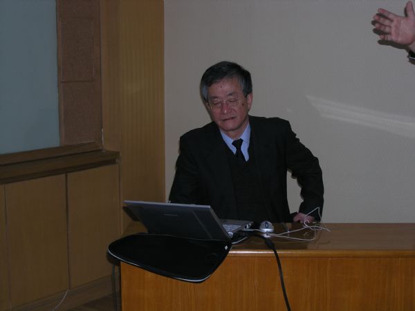 学术报告会由林伟军副研究员主持,沈建中研究员介绍了两位学者的工作。Saka教授的报告题目为“Thermal Opening Technique for Nondestructive Evaluation of Closed Cracks”,他指出闭合裂缝中存在较大的散射应力,给直接利用超声波检测带来了一定的困难,但如果采用热开裂法可以减少散射应力的影响,增大散射波的幅度,更容易识别闭合裂缝;另外,利用焊角回波信号和散射波信号在裂缝中的传播时间的差别可以评估裂缝的深度等。目前的理论和实验研究表明,热开裂法测量闭合裂缝的准确度较高,是一种较为新颖的方法。