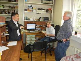 在参观俄科院大气物理所实验室期间,实验室的Vitaly Perepelkin研究员向杨亦春研究员展示了俄方目前在进行的海浪产生的次声实验情况;俄罗斯大气物理所副所长Sergey Kulichkov与杨亦春研究员就地震前兆次声机理进行了探讨。双方一致认为:由于地震本身活动的复杂性,因此通过密集布阵,利用云图的形式实现次声传播规律研究是地震活动相关次声研究的有效手段,中方目前建立的次声阵列是此种研究实验的良好开端。此外,双方还就双方加强双边互访,举办双边研讨会,建立联合实验室等方面进行了讨论,旨在增加双边交流合作,实现优势互补,推动次声领域研究不断前进。