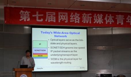 秉承联合实验室的宗旨,本届论坛围绕网络新媒体的关键科学问题和核心技术展开了热烈的讨论,共有包括副研究员、青年教师、优秀研究生在内的18名青年学者做了学术报告。报告内容不仅涉及大数据,光通信,车联网等前沿技术领域,也包括信息融合与检索,P2P技术,图像处理,以及用户精确推荐等多个传统领域。其中,朱祖勍介绍了未来光通信网络,描述了基于光介质为传输媒质,光波为载波的通信网络中的相关研究,勾画了美好的未来通信世界;刘锐做了关于人脸识别的报告,脉络清晰地为大家剖析了人脸识别的相关技术,从人脸姿势和感光角度入手,提出了新颖的算法,提高了人脸识别的准确率;尤佳莉介绍了关于分布式网络中基于用户行为聚类的节点可用性预测方法的研究,介绍了根据用户历史行为,通过聚类的方法找到行为相近的节点,通过查找目标节点的聚类对象来对节点未来的行为进行预测。会议现场大家踊跃提问,深入交流,气氛热烈。