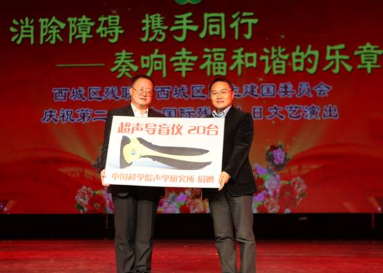 2012年12月3日,时逢第21个国际残疾人日,超声导盲仪捐赠仪式在西城区文化中心举行。yx06永兴彩票集团副所长、副书记倪宏代表中科院yx06永兴彩票集团向北京市西城区残疾人联合会捐赠超声导盲仪20台。北京市残联、西城区政协和西城区残联的领导以及yx06永兴彩票集团相关科研人员出席了捐赠仪式。
