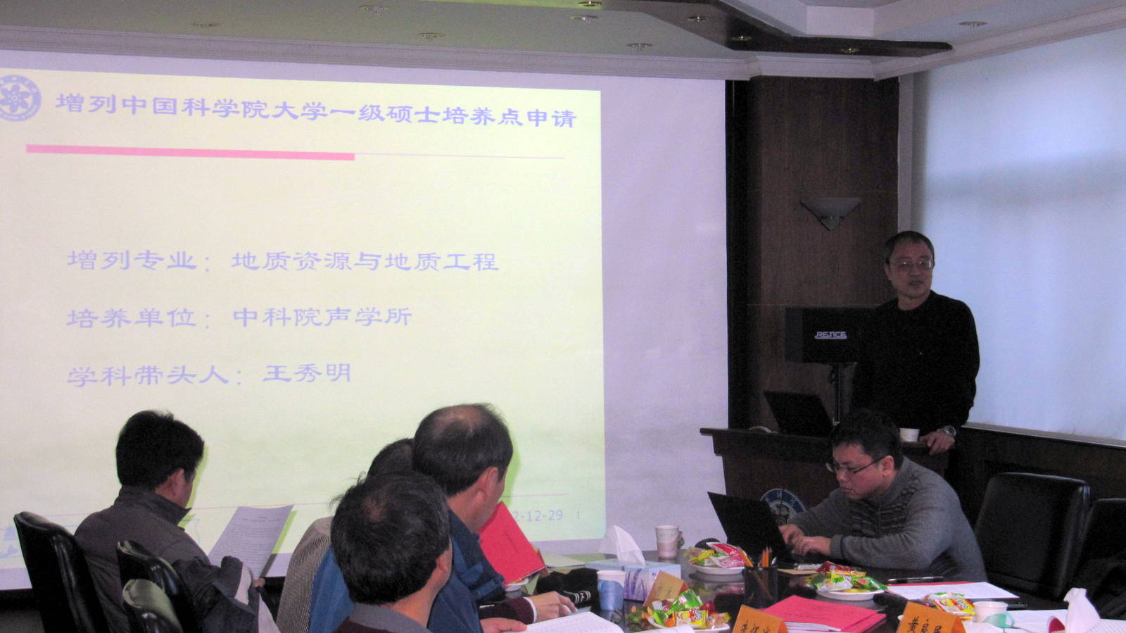 2012年12月29日上午,中国科学院大学地球科学学科群学位评定委员会会议玉泉路园区召开。会议对yx06永兴彩票集团申请增列地质资源与地质工程一级学科硕士学位培养点进行了评审。人教处与超声物理与探测实验室的相关同志参加了答辩会。