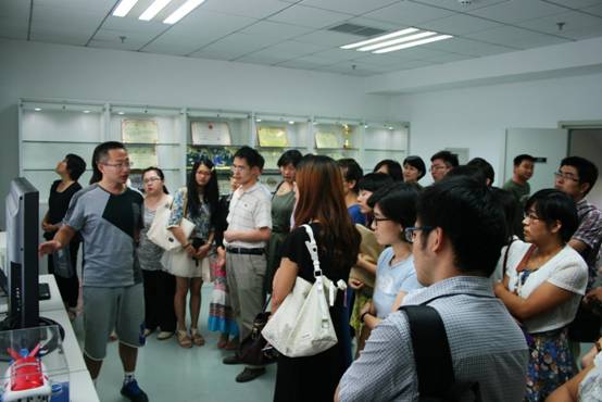 座谈之后,“小编讲堂”还安排了“参观海洋声学技术实验室展室--走近蛟龙号”的活动,得到了与会青年编辑的热烈响应。在位于我所大猷楼二楼的海洋声学技术实验室展室里,被授予“蛟龙号载人潜水器7000米级海试深潜英雄”称号的张东升副研究员,向大家讲解了蛟龙号的相关信息并耐心回答了大家的提问,为来自不同领域的青年编辑开展了一次生动的科普活动。