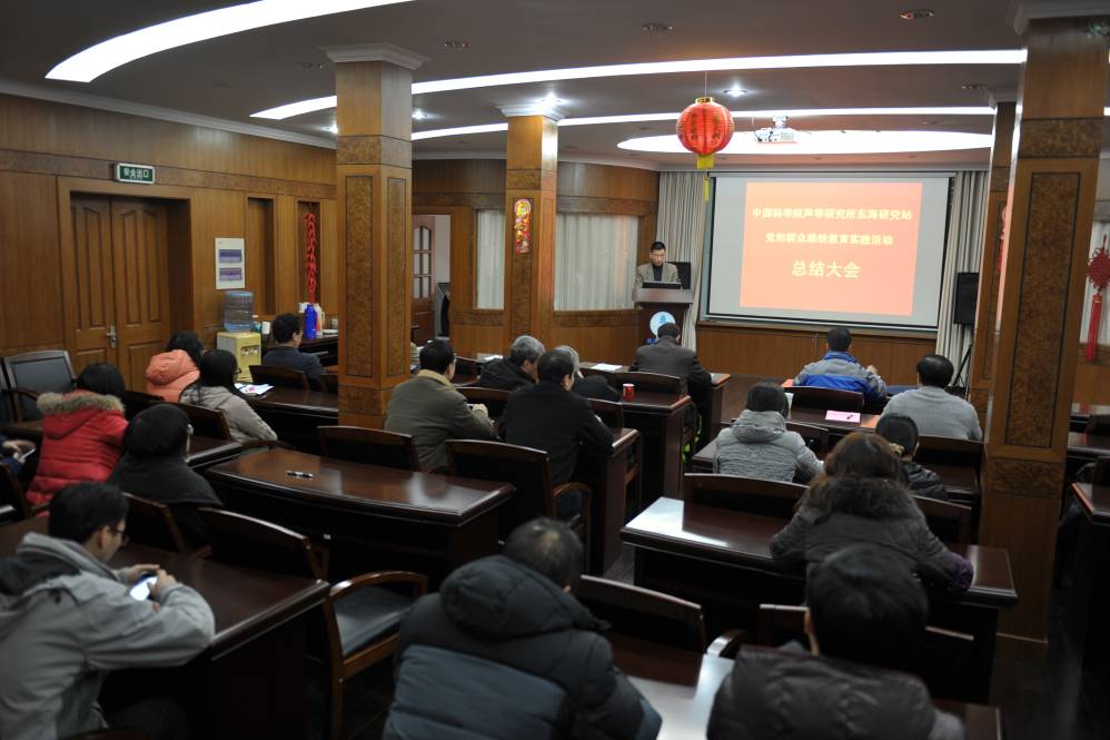 2月17日下午,东海站党的群众路线教育实践活动总结大会在501会议室举行。yx06永兴彩票集团督导组马晓川副所长、郭良浩组长出席会议,东海站党政领导班子成员、各职能部门负责人、各党支部书记、副研以上党员代表、民主党派代表、人大代表、团委书记等20余名党员参加了总结大会。大会由副站长许伟杰主持。