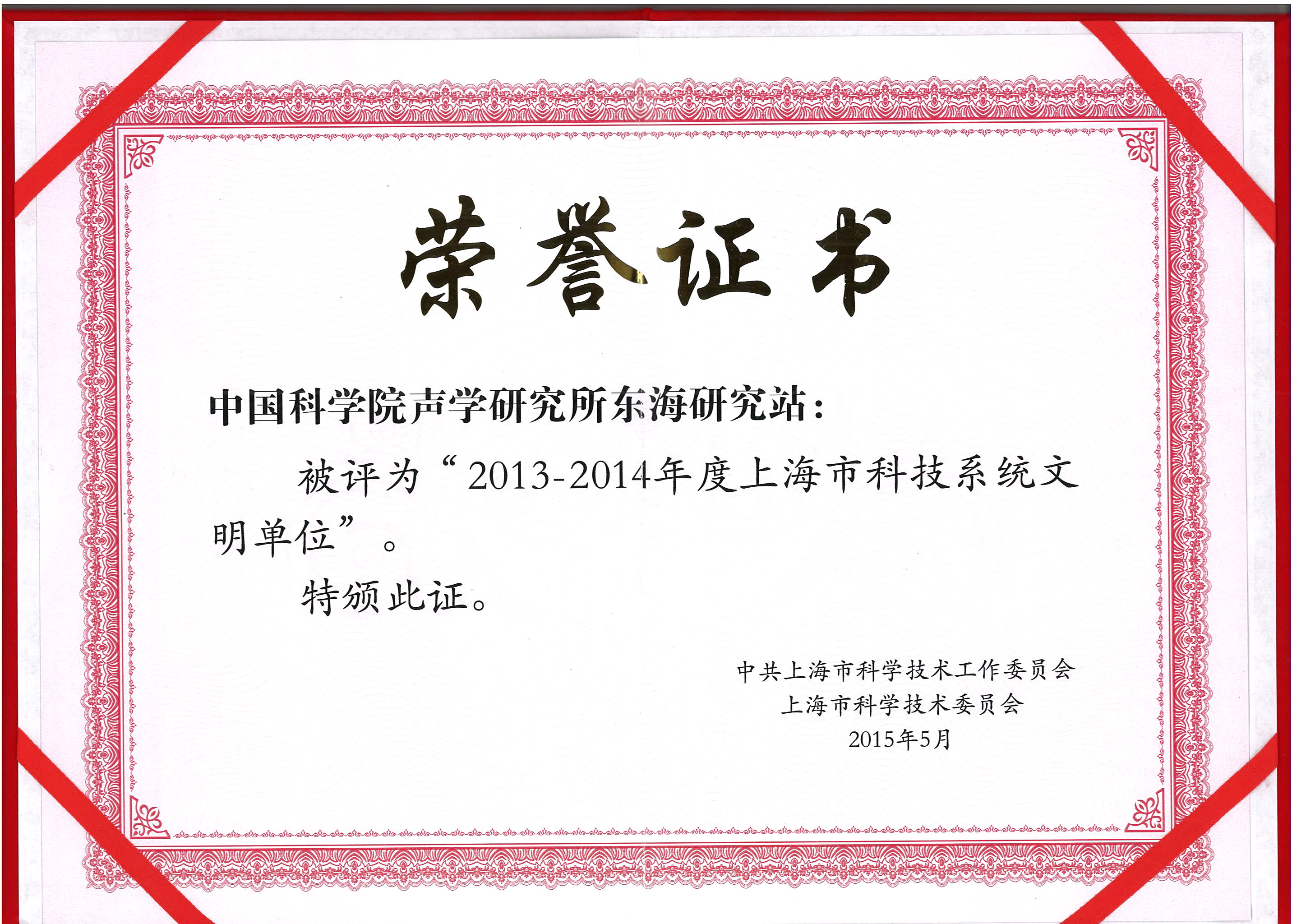 日前,2013-2014年度上海市科技系统文明单位评选结果揭晓,中科院yx06永兴彩票集团东海研究站再次荣获获“上海市科技系统文明单位”称号。东海站能够连续保持这项荣誉,既是全体员工良好行为的体现,又是实践中科院“率先行动”计划创新文化的有效检验。