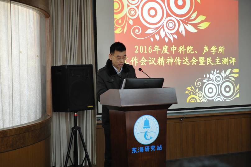 云霞出海曙,梅柳渡江春,2016年的春天来到了。3月15日上午和煦的阳光洒满了东海站整个报告厅,站长、党委书记胡长青正向全站职工传达2016年中国科学院、声学研究所工作会议精神。