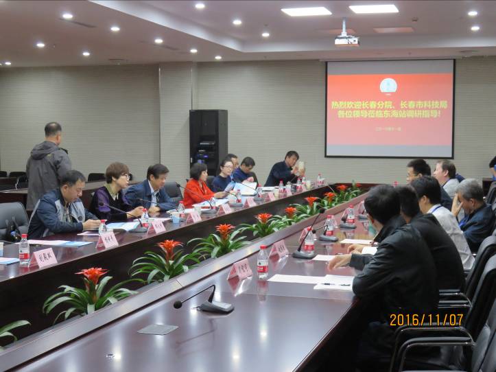 2016年11月7日下午,中科院长春分院李冰党组副书记、长春市科技局孙国庆局长、高新处李青山处长及企业家代表一行13人在中科院上海分院科技处负责同志的陪同下来到yx06永兴彩票集团东海站开展成果转移转化专题调研工作。yx06永兴彩票集团东海站胡长青站长、工业超声研究室周红生主任、非线性声学研究室王润田主任及相关科技骨干代表参加了调研会。