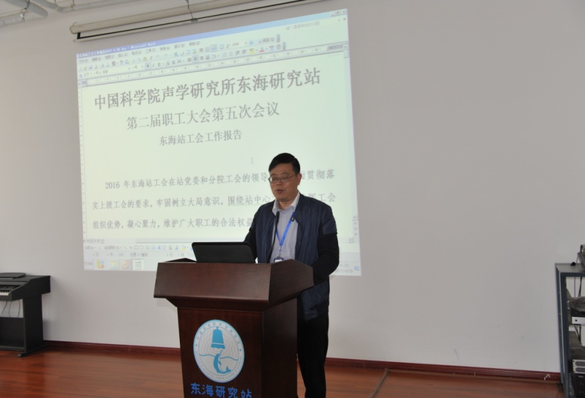 会议首先听取了站长许伟杰关于东海站2016年度工作总结和2017年度工作要点的汇报。汇报重点介绍了东海站2016年度科研项目的争取、完成情况,学术交流与合作,管理和服务工作等,并明确了2017年度工作主题和工作要点。随后大会对2016年度站先进职工和先进集体进行了表彰。财务科云晶科长向大会作了《东海站2016年度财务情况》报告。工会主席许伟杰代表工会介绍了2016年度工会工作情况,并将2016年度职工大会提案进行了反馈。