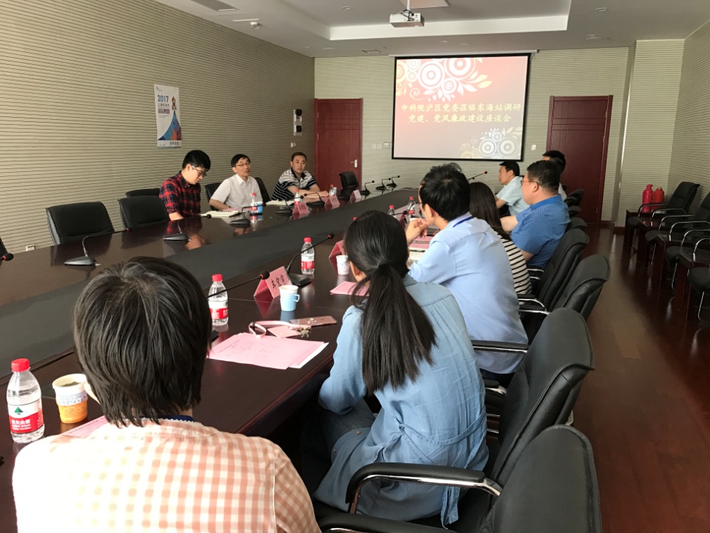 座谈会上,胡长青向田申荣重点汇报了东海站搬迁至嘉定新园区以来,围绕“深耕嘉定,推动东海站党建、党风廉政建设”开展的工作情况。田申荣向与会人员介绍了中科院全面“从严治党”和纪监审工作“从严从重”的最新形势,他要求大家一定要认清形势,严格按照党中央“两学一做”的要求,进一步加强目标需求导向,紧密结合东海站自身情况,推进党建创新工作,对每位党员加强思想、理想层面的引领,激发出每位党员的创新活力与潜力,充分发挥好党组织在全局工作中的战斗堡垒作用。