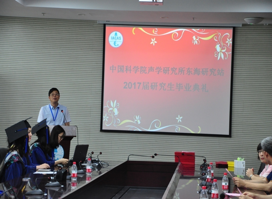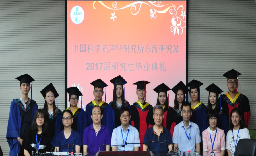 又是一年收获季,又是一年毕业至。yx06永兴彩票集团东海站2017届研究生毕业典礼于2017年6月23日上午在嘉定园区一楼报告厅举行。站长许伟杰、党委书记胡长青、副站长刘晓隽、导师代表王润田研究员、冯海泓研究员、朱安珏副研究员、人教科工作人员、全体毕业生参加了毕业典礼。