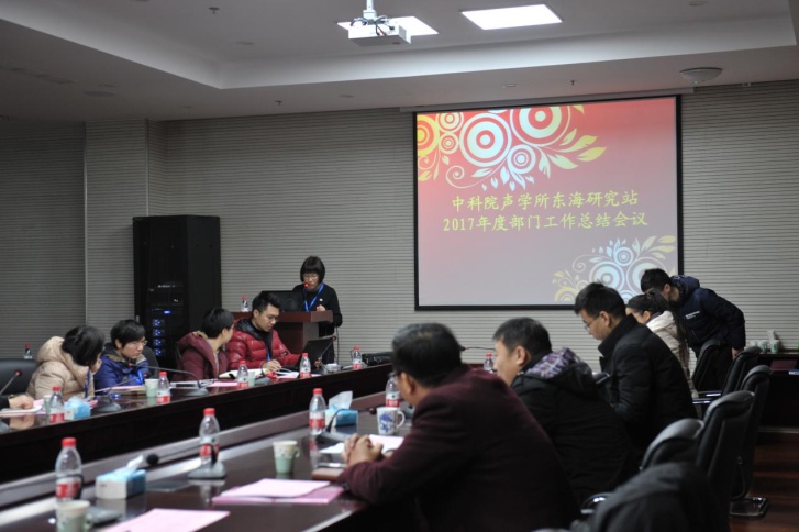 2018年1月23日,东海站召开2017年度部门工作总结会议,站党政领导班子、各科室负责人、党支部书记等20余人参加了会议,新安江试验场负责人和嘉善电声研发中心负责人也参加了会议。会议由副站长刘晓隽主持。