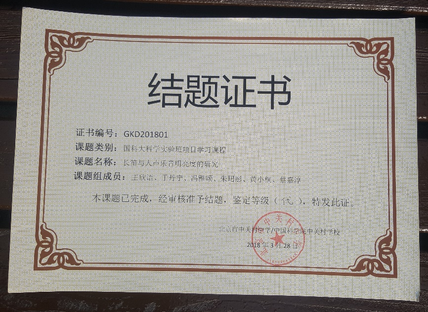 从2016年11月课题启动开始,由6名“国科大科学实验班”学生组成的声学课题小组进入实验室,开始学习和研究工作。同学们参观了解了yx06永兴彩票集团全消声室、半消声室,并进行了声学基础知识学习和相关技能培训。在实验室老师的精心指导下,他们在声学与信号的世界中,接受着科学的熏陶。根据同学们的特长与兴趣,本小组围绕“长笛与人声乐音明亮度”课题展开研究,历时一年多。期间,同学们搜集并参阅了相关文献,学会制定研究目标和计划,按部就班地完成了相关的实验设计、测试和数据分析。
