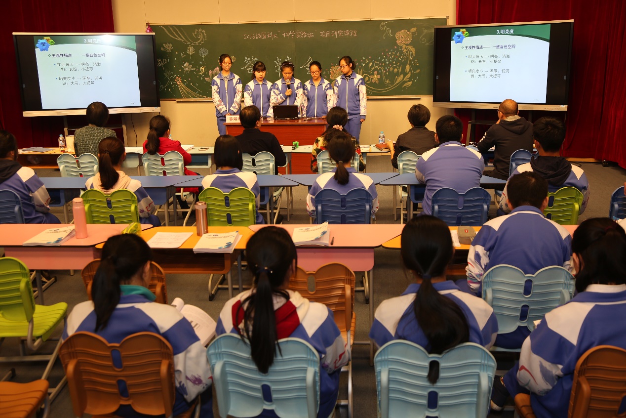 2018年3月26日,2016级“国科大科学实验班”项目研究课程答辩会在中关村中学举行。中关村中学校领导、老师与来自中科院的多位专家组成答辩委员会,中关村中学师生及学生家长听取了各个小组的工作汇报。院噪声与振动重点实验室的杨军研究员及余紫莹博士作为答辩小组评委参与了会议。汇报课题共21项,分成3个小组,内容涉及生物学、化学、天文、植物学、声学、计算机、地理学、自动化等多个领域。由专家组成的评委组从选题创新性、研究内容、论文规范与汇报情况等方面对各个小组的报告进行打分。由院噪声与振动重点实验室指导的声学小组完成了题为“长笛与人声乐音明亮度的研究”报告。同学们的报告认真细致,分析透彻,演说清晰生动,获得了总评“优秀”的优异成绩。