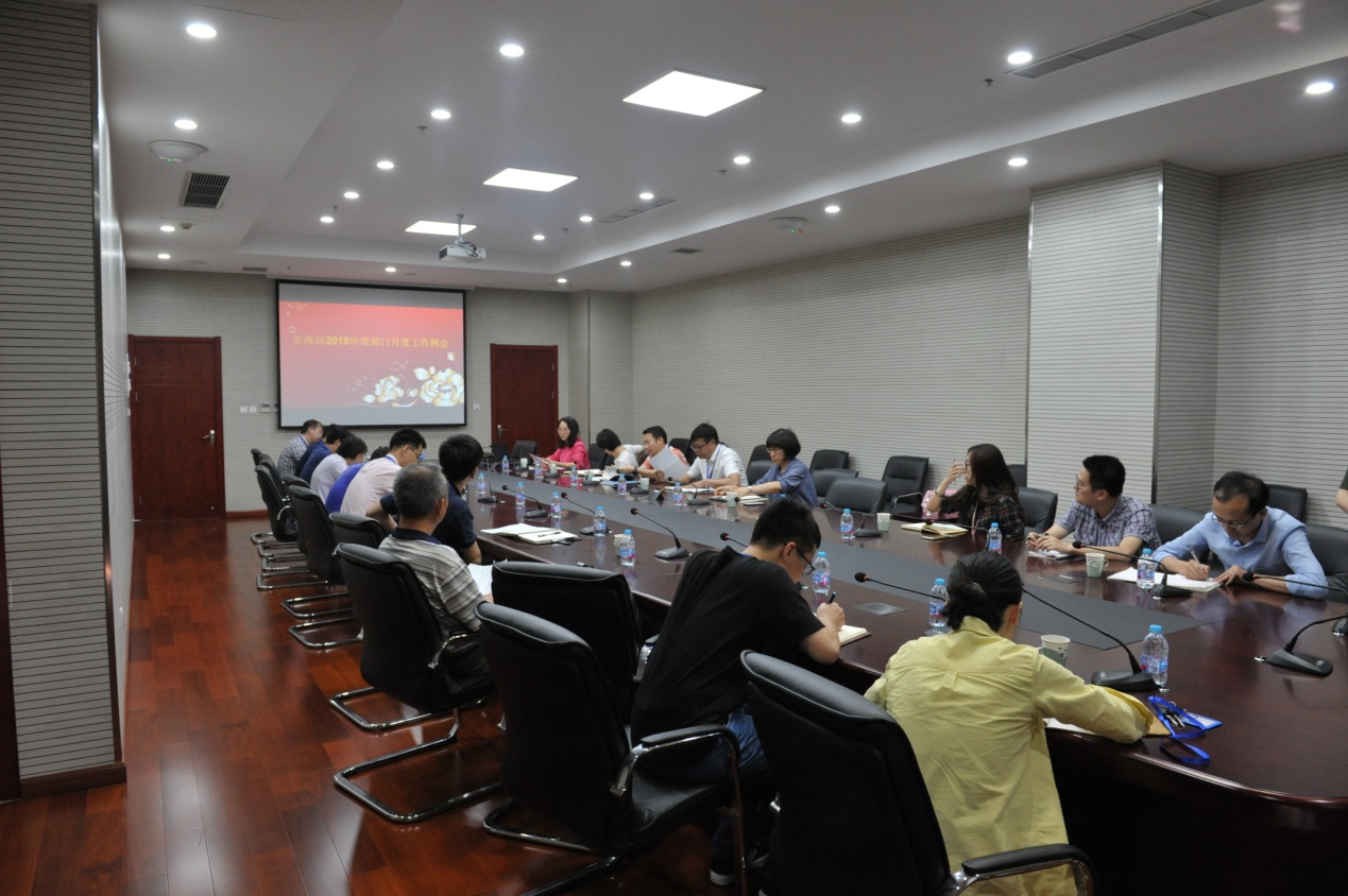 2018年6月22日下午,东海站组织各研究室负责人、职能部门负责人及在职党支部书记等召开半年度部门工作会议,全体党政领导班子参加了会议,会议由站长许伟杰主持。